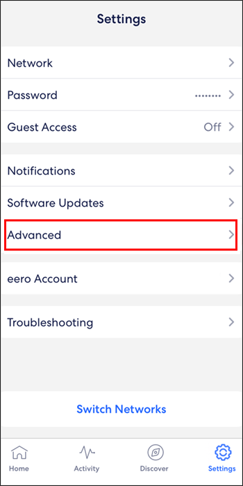 Abra o aplicativo eero e toque em “Configurações”no canto inferior direito.