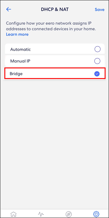 Pessoas com certos tipos de configurações de rede precisam gerenciar sua rede através do roteador existente. É por isso que existe o modo bridge no eero. No entanto, não é aconselhável ter esse modo ativado, pois ele tira alguns dos recursos eero mais avançados.