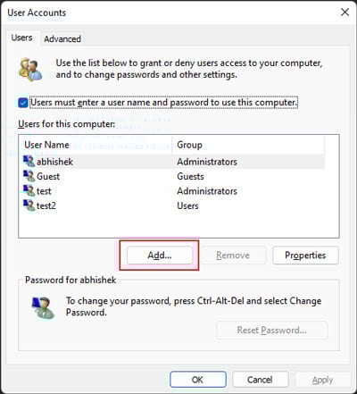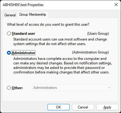 Digite o nome de usuário e as senhas. Clique em Avançar e em Concluir. Se você deseja tornar a conta um administrador, no Netplwiz, selecione a conta e clique em Propriedades. Vá para a guia Associação de grupo . Marque Administrador e clique em OK.