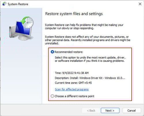 Nesses casos, você precisa executar uma restauração do sistema para reverter todas essas alterações. Mas lembre-se de que você precisa ter um ponto de restauração a partir do momento em que o menu Iniciar estava funcionando corretamente para executar esta solução.