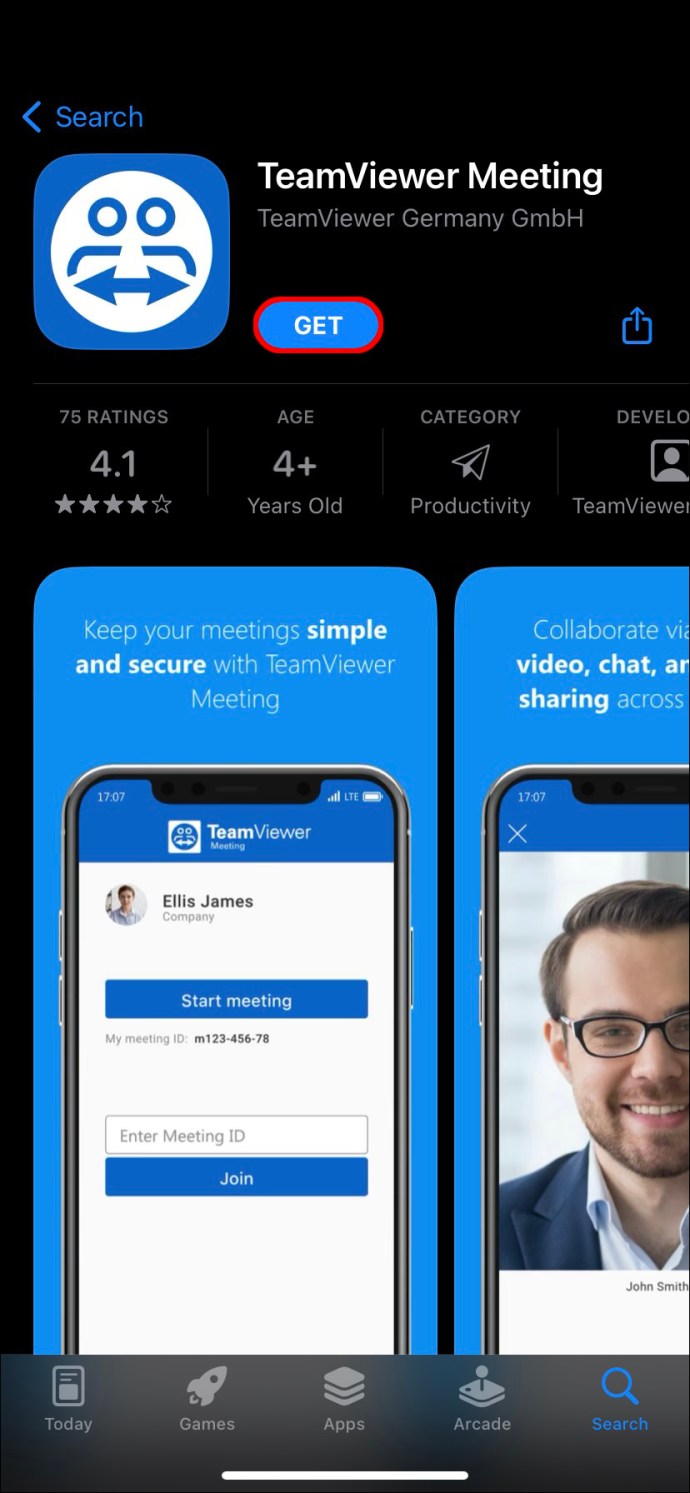 Baixe e instale o TeamViewer Meeting iOS ou Android.