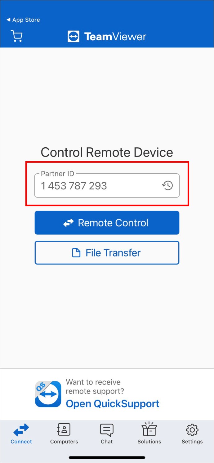 Solicite o TeamViewer ID e senha de seu chefe ou colega de trabalho. Inicie o aplicativo TeamViewer em seu iOS ou Android dispositivo.