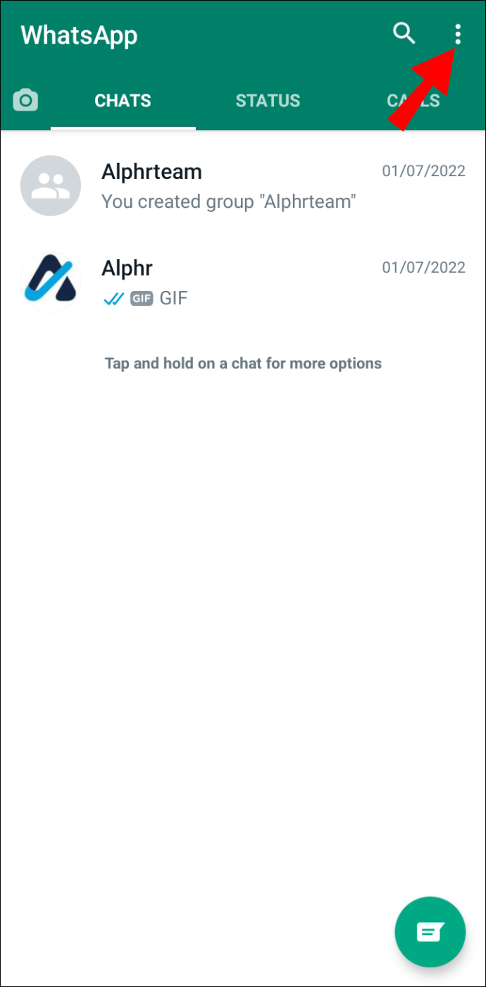 Inicie o WhatsApp e toque no menu de três pontos no canto superior direito.