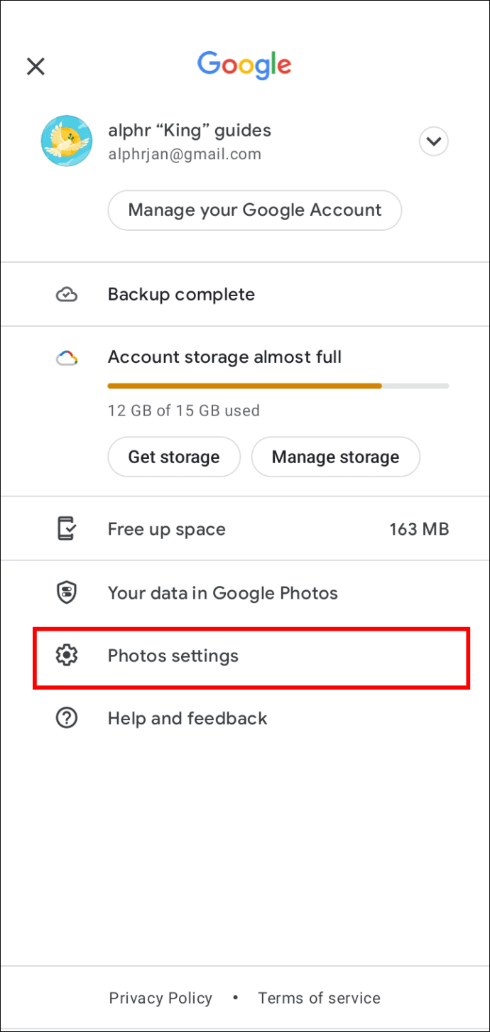 Toque em”Configurações de fotos.”