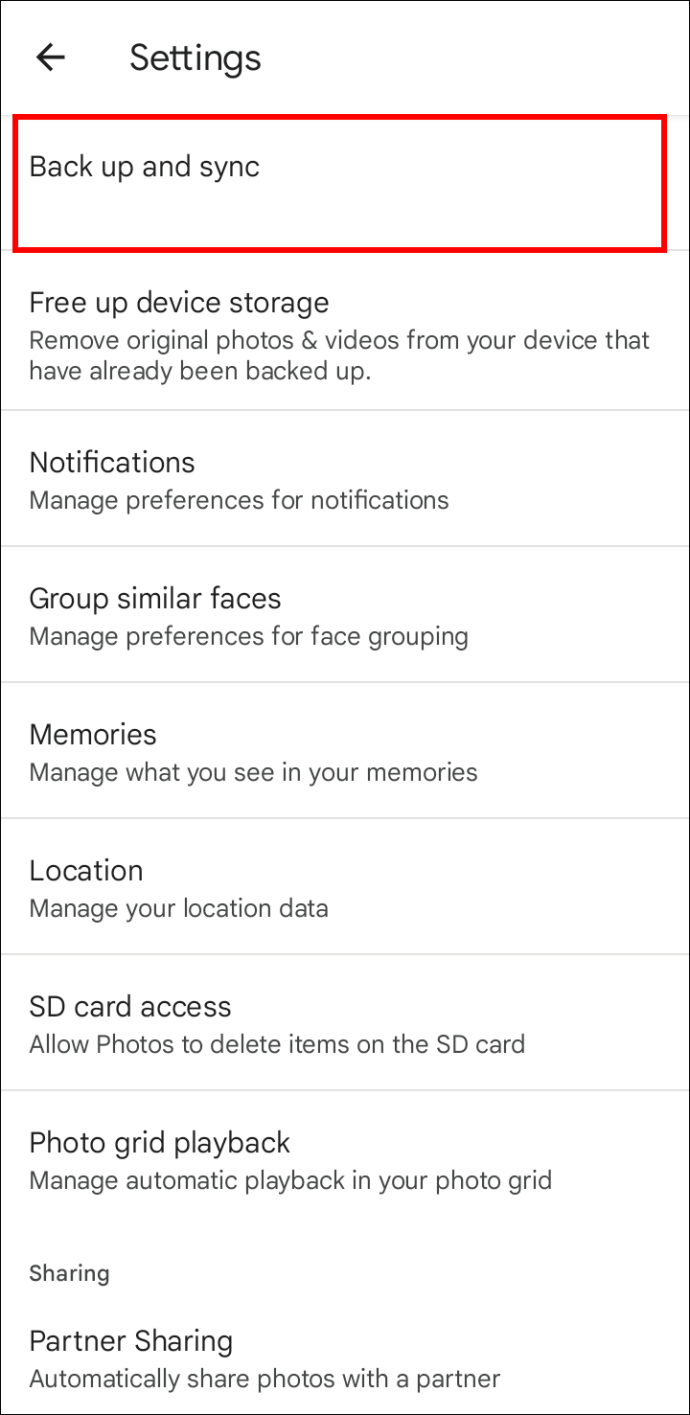 Vá até”Backup e sincronização”e toque nele.