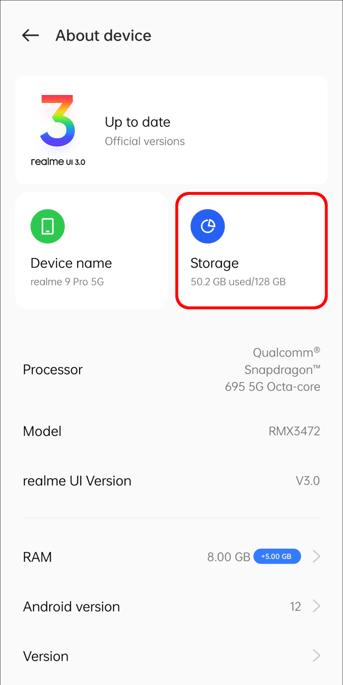 Toque em”Armazenamento.”
