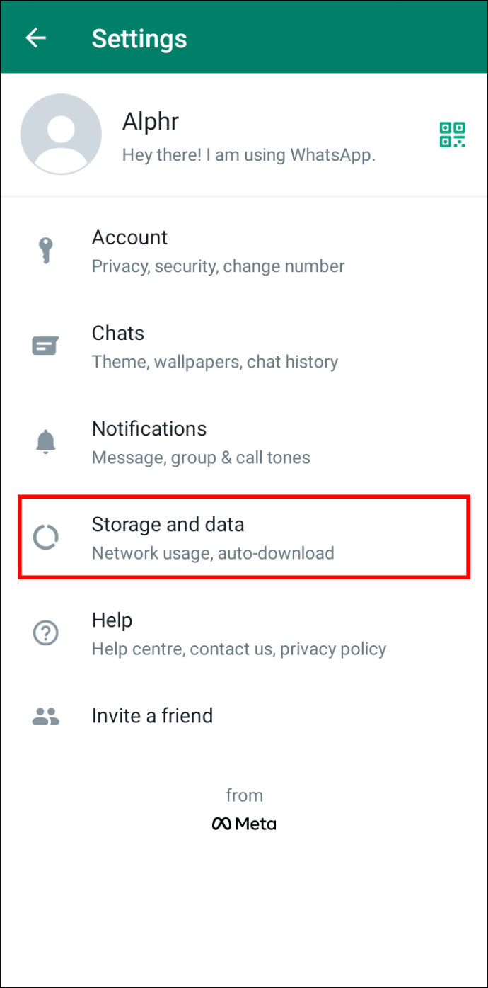 Pressione”Configurações”e vá para”Armazenamento e dados.”