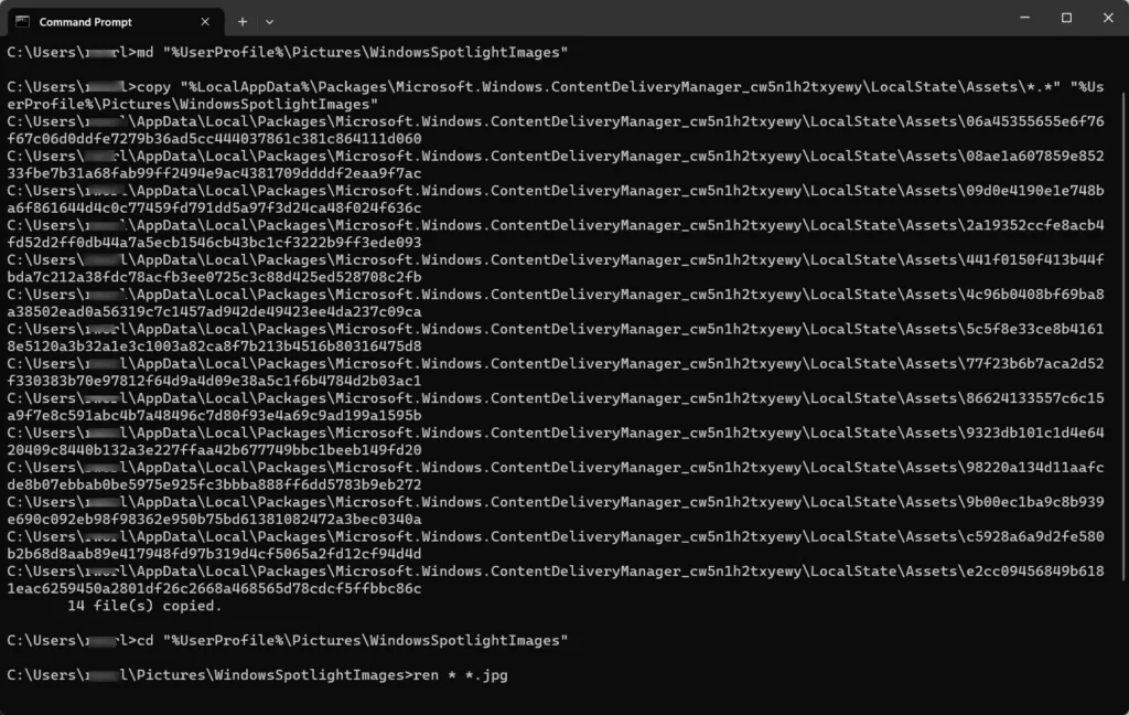 ren * *.jpg Imagens do Windows Spotlight no prompt de comando do Windows