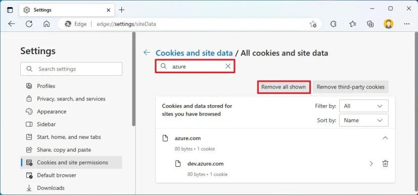 Para excluir cookies de um site específico no Microsoft Edge, siga estas etapas: