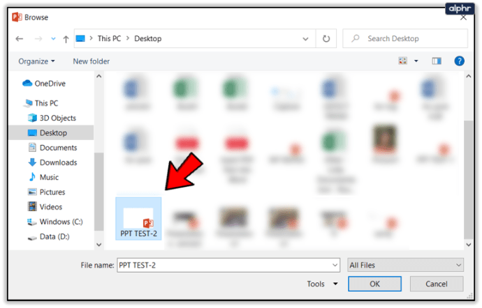 Procure a apresentação que deseja mesclar com sua apresentação principal e selecione-a clicando duas vezes nela.