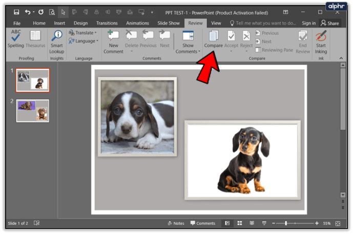 Depois que a fusão estiver concluída, você verá o painel Revisões à direita das apresentações mescladas.Na parte Alterações de apresentação, você verá as diferenças entre as apresentações e escolherá quais alterações deseja manter e quais deseja descartar. A parte Slide Changes exibe as diferenças entre os slides individuais das duas apresentações. Escolha as configurações que deseja manter para a versão final.