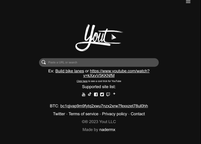 Yout permite que os usuários baixem vídeos e faixas de áudio de plataformas como o YouTube. O software do site depende do projeto de código aberto youtube-dl, que permite aos usuários baixar vídeos apesar da falta de um botão de download no YouTube. Yout afirma que não viola nenhuma lei e que tem muitos usos legítimos, como educação, jornalismo e direitos humanos.