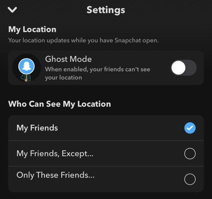 Para controlar o que o Snapchat relata para sua localização, você tem três opções: