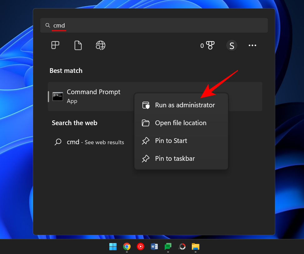 Primeiro, abra o prompt de comando. Pressione Iniciar, digite cmd, clique com o botão direito do mouse em’Prompt de comando’e selecione Executar como administrador.