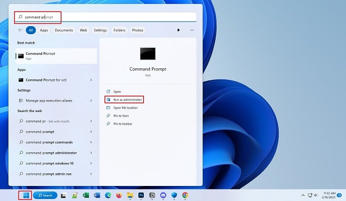 Acesse o Menu Iniciar, procure por Prompt de Comando e execute-o como administrador.