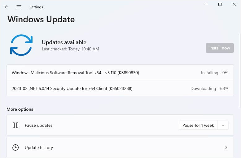 Se houver uma atualização cumulativa pendente, você verá o botão Instalar agora. Pressione para continuar.