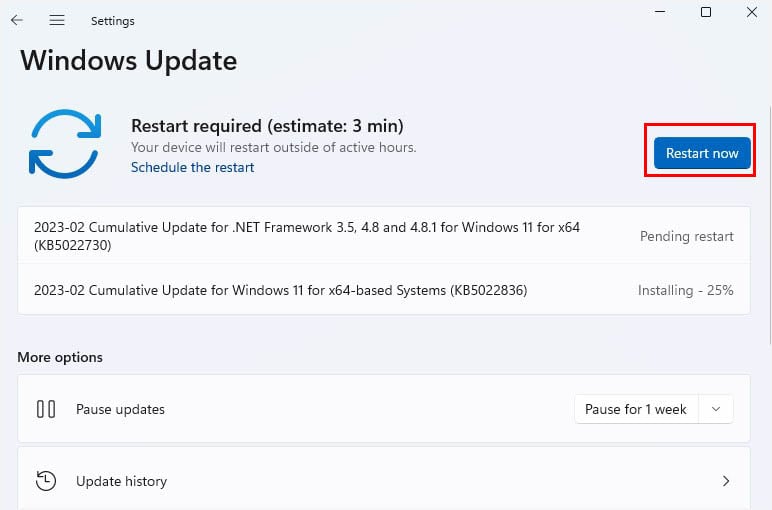 Agora, pressione o botão Reiniciar agora para reiniciar seu PC e concluir a atualização.
