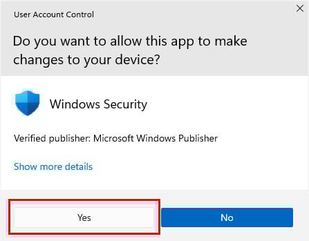 No prompt do Controle de Conta de Usuário, pressione Sim.