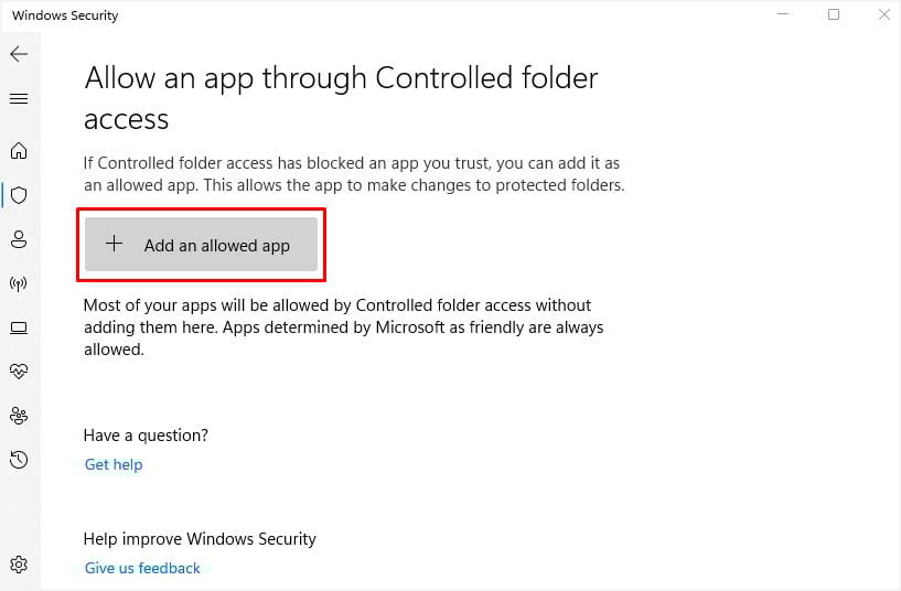 Embora a desativação do Acesso à Pasta Controlada deva eventualmente resolvê-lo, você pode não obter benefícios extras , tornando o recurso meio inútil. Em vez disso, você pode permitir que o aplicativo específico ignore, e veja como fazer exatamente isso: