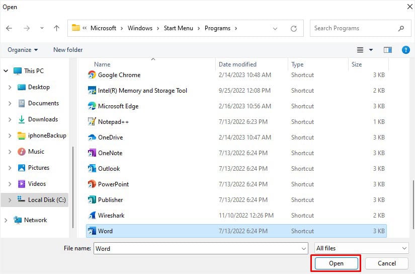 fina Finalmente, encontre seu aplicativo e clique em Abrir. Isso adicionará o aplicativo logo abaixo do botão Adicionar um aplicativo permitido.