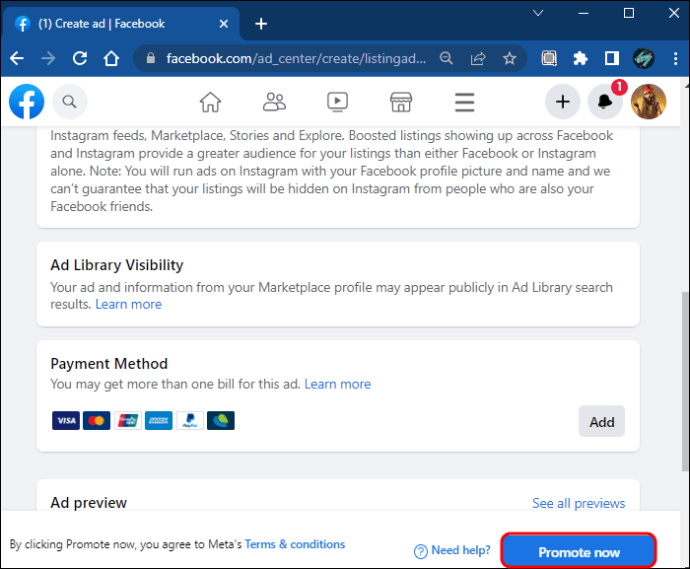 Depois de definir tudo, clique em”Promover agora”e está tudo pronto