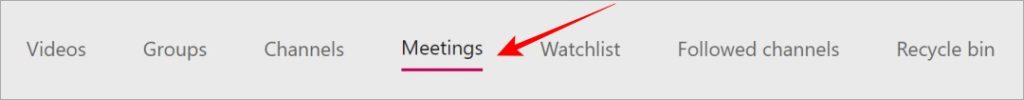 3. Agora selecione a guia Reuniões na parte superior, onde você encontrará todas as gravações de reuniões do Teams no Stream.