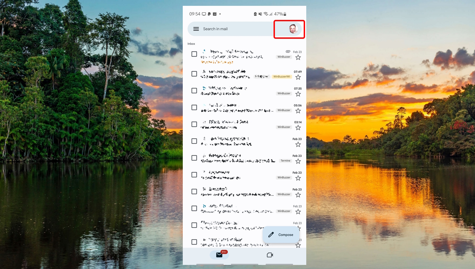 Toque em seu perfil do Gmail imagem no canto superior direito para abrir as opções