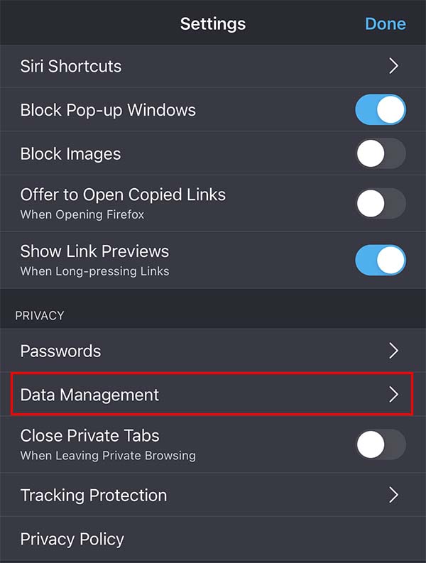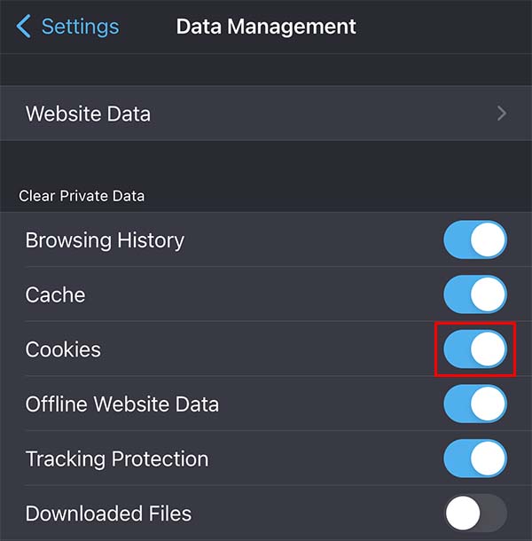 A versão iOS do Firefox apresenta a maneira mais fácil de habilitar ou desabilitar os cookies. Veja como fazer isso: