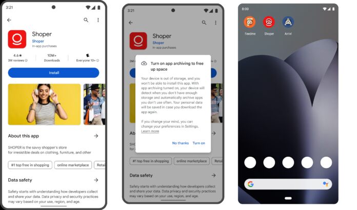 O Google ressalta que o arquivamento automático foi projetado para facilitar o gerenciamento do espaço de armazenamento pelos usuários e evitar o incômodo de desinstalar e reinstalar aplicativos. O recurso está disponível como uma opção quando você instala um novo aplicativo. Se você não tiver espaço suficiente, selecione Arquivar automaticamente para mostrar quais aplicativos mais antigos serão arquivados para criar mais espaço para o novo aplicativo.