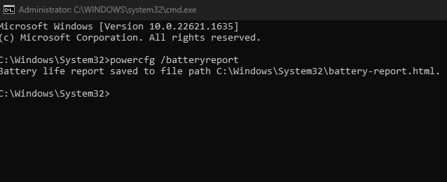 Como alternativa, você também pode usar o prompt de comando para verificar o status atual da bateria do laptop.