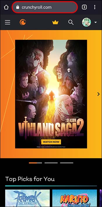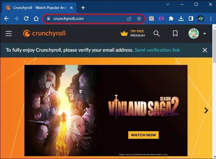 Abra seu navegador preferido e acesse o Crunchyroll site.