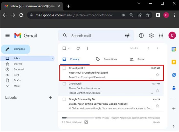 Vá para sua conta de e-mail e abra o e-mail que você acabou de receber da Crunchyroll.