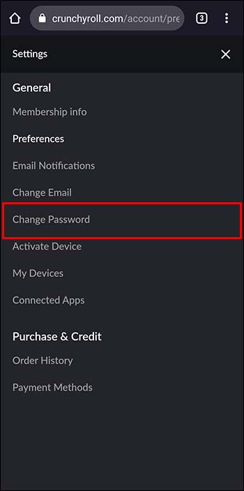 Como alterar a senha do Crunchyroll em um dispositivo móvel