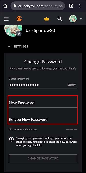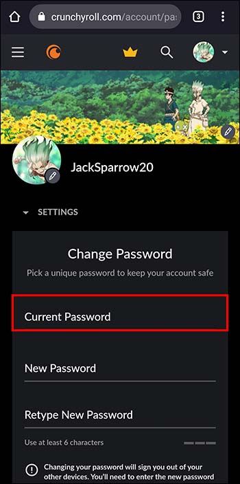 Aqueles que não têm acesso a um computador também podem atualizar seus Senha do Crunchyroll por meio de um dispositivo móvel.