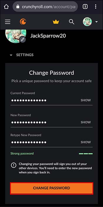 O Crunchyroll não t limitar o número de vezes que os usuários podem alterar suas senhas. Portanto, aproveite esse recurso alterando sua senha com frequência para evitar violações de segurança.