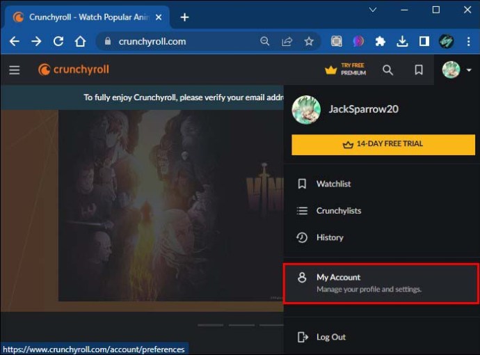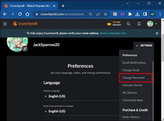Como alterar a senha do Crunchyroll em um computador