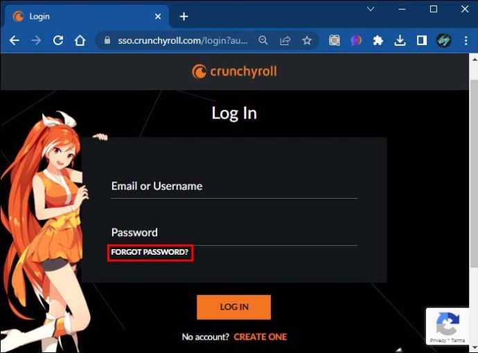 Como descubro minha senha da Crunchyroll?