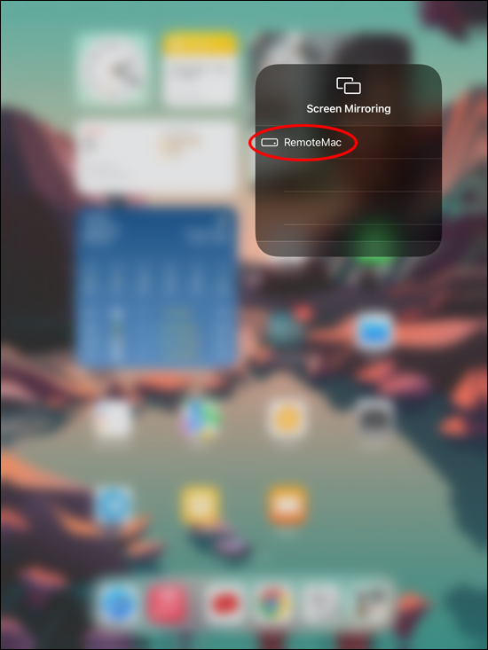 Escolha o seu Mac na lista de dispositivos disponíveis e o dispositivo móvel começará a transmitir na tela do seu Mac.