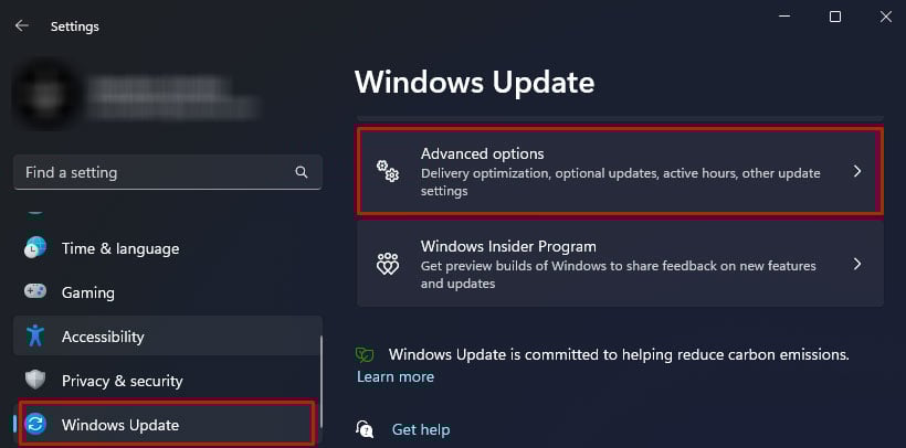 Pressione a tecla Windows + I para abrir as Configurações. Acesse Atualização do Windows > Opções avançadas.