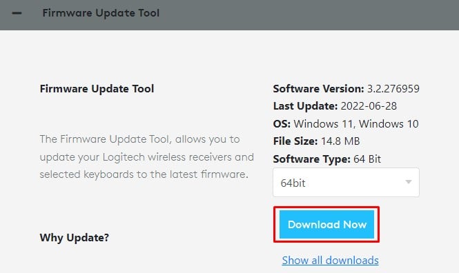 Vá para Site de download da ferramenta de atualização de firmware no site oficial da Logitech.