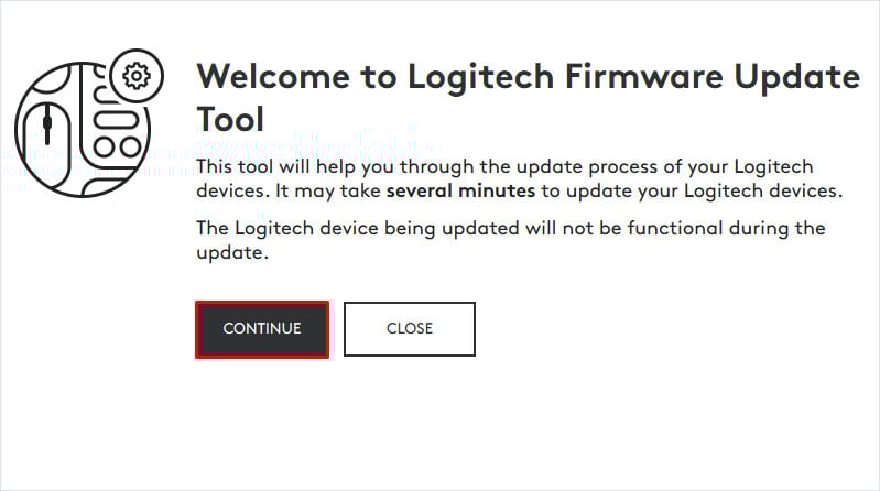 Observação: se não houver atualização de firmware disponível, o aplicativo exibirá uma mensagem informando que todos os produtos da Logitech estão atualizados.