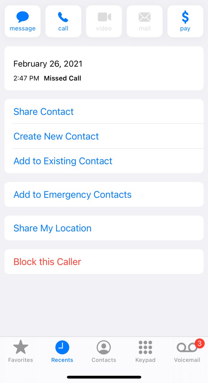 Se você recebe ligações de marketing frequentes do(s) mesmo(s) número(s) ou identificou um chamador e deseja interrompê-lo, você pode bloquear o(s) número(s) em seu telefone. Seu dispositivo e provedor lidam com o bloqueio. Os usuários móveis verão uma chamada com falha em seu registro, e os usuários fixos ficarão felizmente inconscientes.