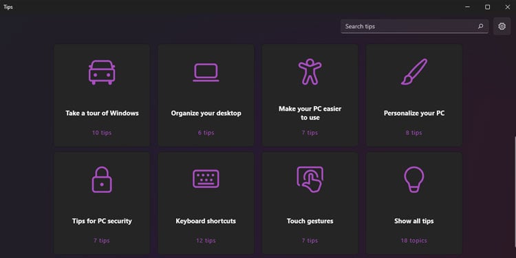 O Windows também vem com um aplicativo Tips que mostra algumas dicas e truques que você pode executar no Windows como atalhos de teclado, organização e personalização do computador, melhoria da segurança e assim por diante.