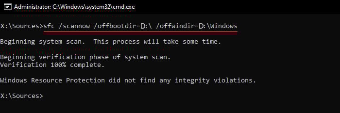 Depois que o comando DISM for executado, você precisará executar o SFC offline para reparar a imagem do sistema