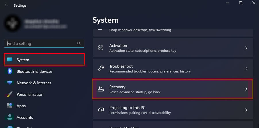 Abra Configurações. Navegue até Sistema > Recuperação .
