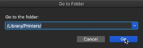 Abra Preferências do sistema. Inicie as Impressoras e Scanners configurações. Ir para a área vazia e clique com a tecla Control pressionada. Toque em Redefinir sistema de impressão. Clique em Redefinir. Digite a senha e toque em OK. Agora, abra a janela do Finder e clique em Ir > Ir para a pasta.