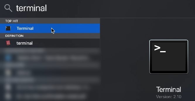 Abra o Terminal. Você pode usar a barra de pesquisa do Spotlight para abri-lo.