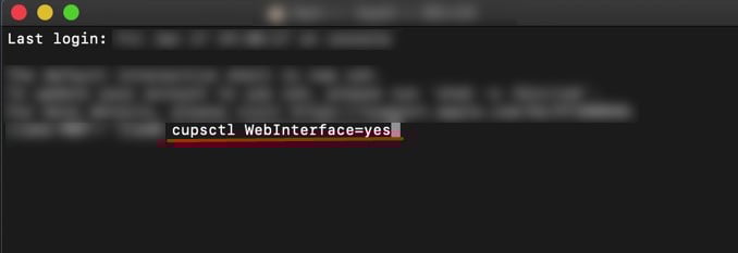 Digite isso no terminal cupsctl WebInterface=yes e pressione a tecla Return .