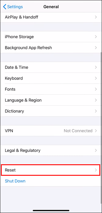 Reinicie seu dispositivo tocando em no botão”Redefinir”no aplicativo Configurações.
