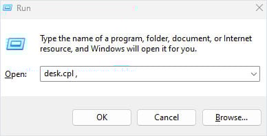 Pressione Windows + R chave. Na caixa de diálogo Executar, digite desk.cpl e pressione Enter.![]()